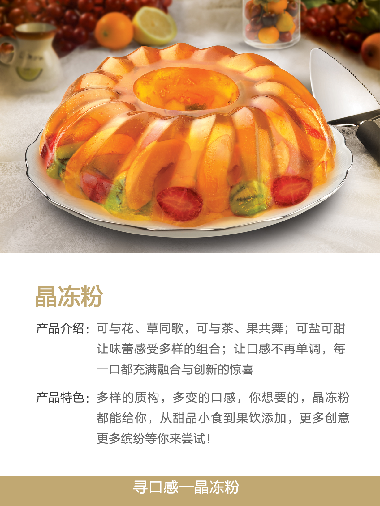 食物之美,不僅僅來自大自然的饋贈,還有一種美味來自我們的靈感。再多汁的水果也擺脫不了四季的束縛,在我們的世界里,水果不只是多汁的,也可以是Q彈的;再美好的蛋糕也有吃不下的最后一口,在我們的世界里,蛋糕不只是小勺慢品的,也可以是一飲而盡的。變化無窮的質(zhì)構(gòu)能為食物帶來豐富的口感,多樣的咀嚼體驗能為食物增添活力。
